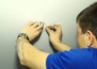 Перед изготовлением конструкции и установкой натяжного полотна потолочную поверхность и стены помещения размечают. Для начала над окном на потолке отмечают места установки карниза. На стенах помещения чертят уровень установки натяжного потолка. Для этого делают следующее: